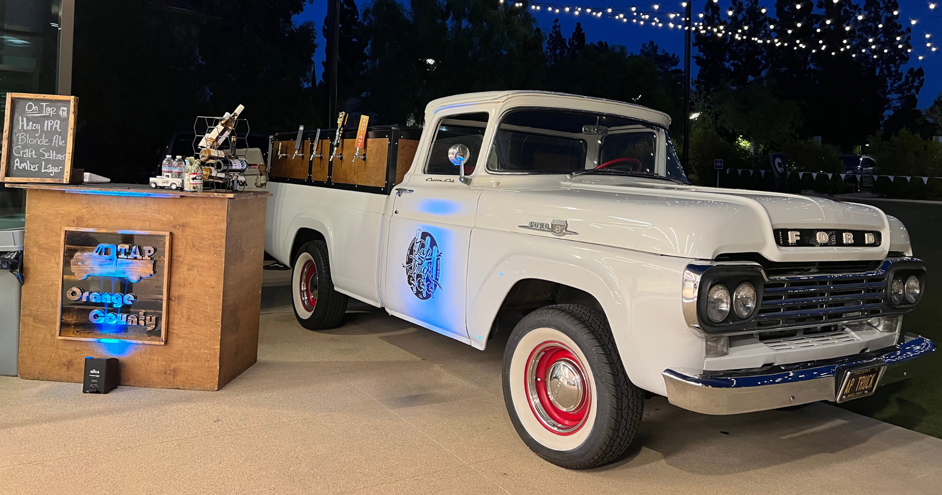 Pearl hit the ground running in 1959 catching the eyes of Californian’s as it operated in the L.A. County area as a farm truck for 40+ years. As the seasons passed, the love for this white stallion remained unwavering. Originally acquired by a Father/ Son restoration team in Norco, this antique hauler was transformed into Orange County’s first Tap Truck! With a rebuilt V8 engine and classic whitewall tires, Pearl is sure to make a memorable entrance at your next social function.